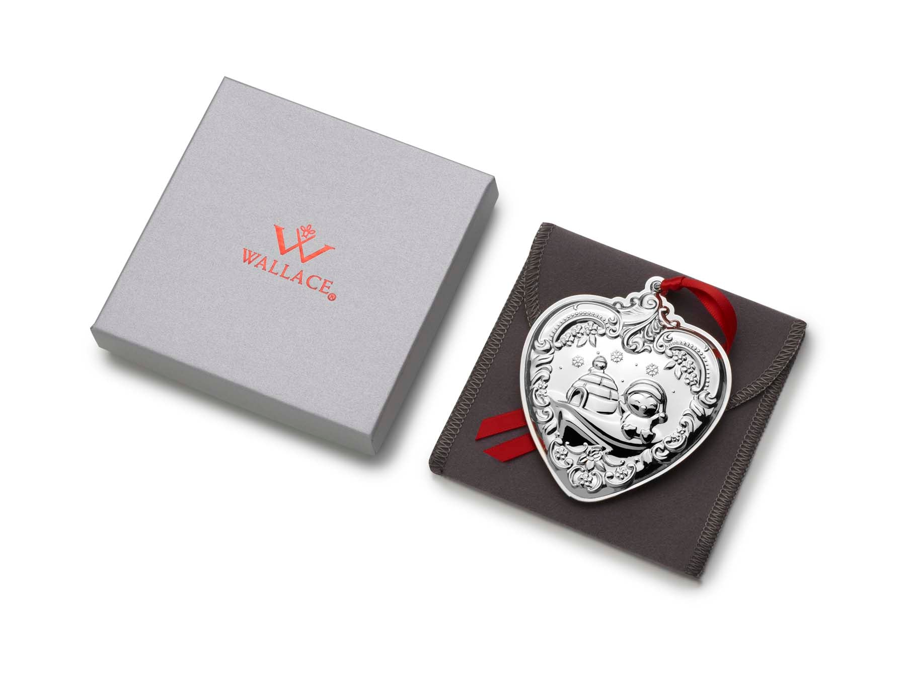 Celebrate the magic of the season with Wallace's 34th Edition Sterling Silver Grande Baroque Heart Ornament. This beautifully crafted keepsake features an intricate Baroque-inspired frame, surrounding a whimsical winter scene of playful penguins by an igloo, set against a snowy backdrop. Meticulously handcrafted in the USA, this ornament embodies the spirit of the holidays with sophistication and charm. Whether given as a heartfelt gift or added to a cherished collection, this stunning piece will bring warmth and elegance to any holiday display.