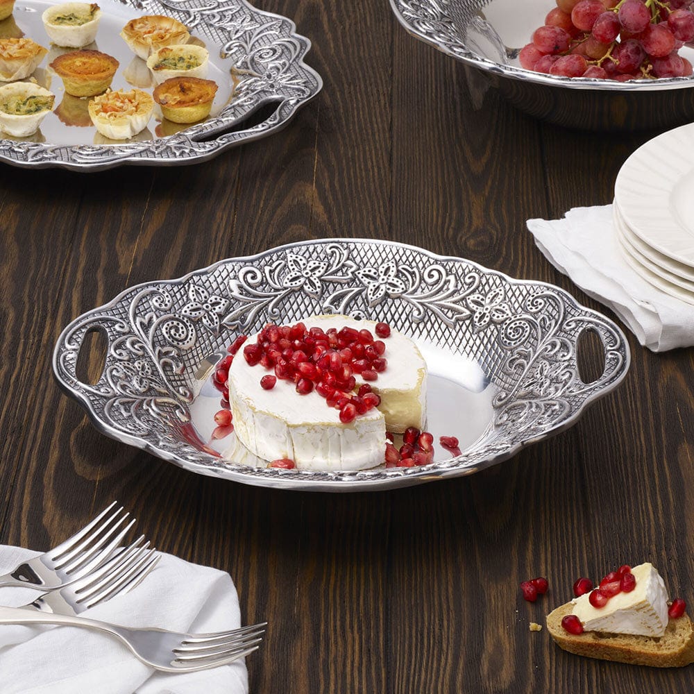 From our family of brands, this Wilton Armetale® English Cottage Small Handled Bowl features a hand-sculpted floral motif set on a lace backdrop. Wilton Armetale® Serveware is ideal for your cooking needs, food stays hot longer and perfect for oven, stove or grill. Designed and crafted by hand, these beautiful products were made to last a lifetime.