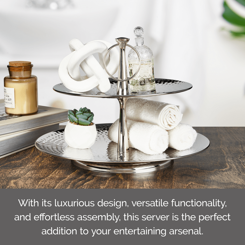Whether you're hosting a lavish dinner party or a casual get-together, our 2-Tier Server is your go-to for style, versatility, and function. Make every occasion shine with this elegant and adaptable serving solution. Designed for flexibility, it can be configured to suit any occasion, transforming effortlessly into a single-tier server. The design ensures it remains lightweight and easy to handle.