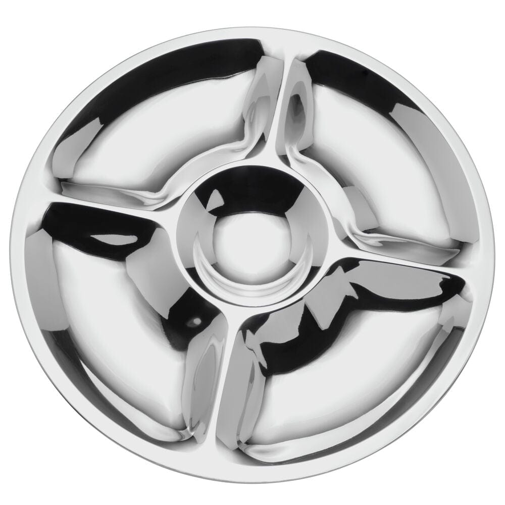• Bowl measures 14 1/4-inches in diameter and sits 3 1/2-inches high. Chip and dip server measures 14 3/4-inches in diameter and 1 1/4-inches high • Crafted of Stainless Steel • Dishwasher safeShare