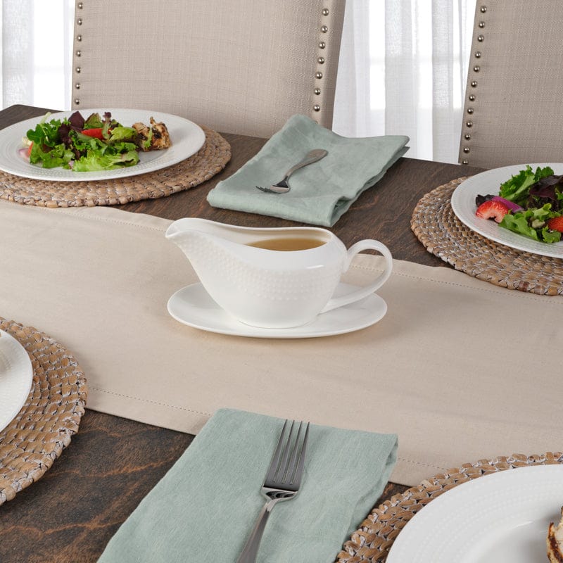 Elevate your dining experience with our Nellie Gravy Boat. Crafted from high quality bone china, its embossed design exudes sophistication. The included stand makes serving effortless, making it a must-have for any elegant table setting. Indulge in luxury with this timeless piece.