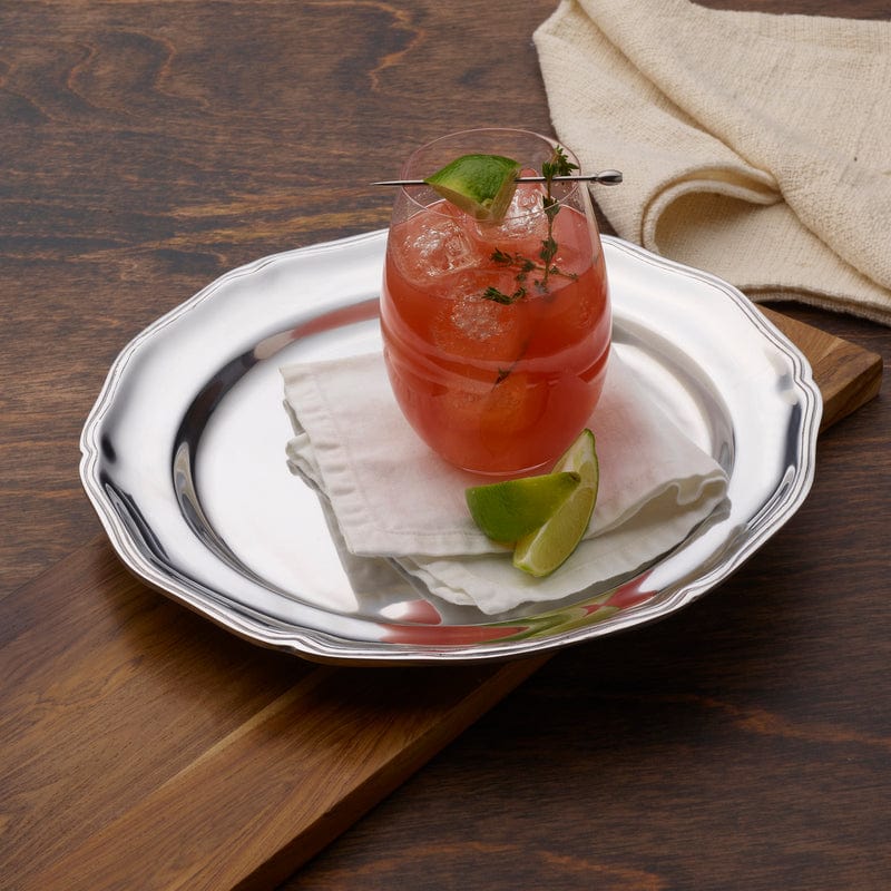 • Round tray measures 12 inches in diameter x 1 inch high. • Crafted of Armetale metal, which is an aluminum-based alloy metal, that is 100% recycled, and food-safe. • This piece will not rust, break, crack or chip under normal usage. Wilton products are oven to stovetop to freezer to refrigerator to table. • Hand wash with a soft sponge or cloth and mild soap and warm water. Do not place in automatic dishwasher. Detergents, harsh chemicals and hard water will harm the metal's finish.Share