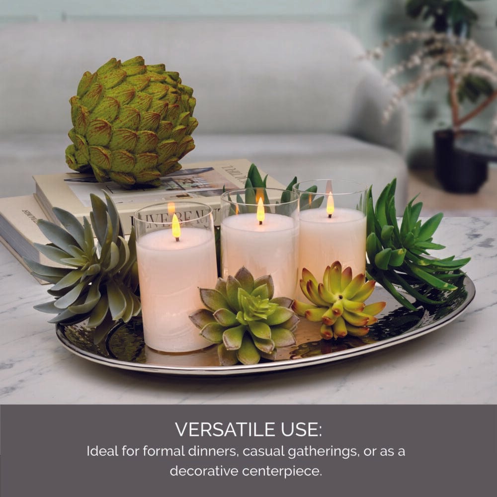 Elevate your entertaining with the Radiance Hammered Oval Serving Tray. This tray blends timeless elegance with everyday practicality. The dazzling hammered finish reflects light beautifully, making it a stunning centerpiece for any table or buffet. Its generous size and lightweight construction make it perfect for serving appetizers, desserts, or even an array of beverages. Whether you're hosting a formal dinner, a casual gathering, or simply looking for a decorative piece, this serving tray combines functionality with style. Add brilliance to your serveware collection with the Radiance Hammered Oval Tray—where beauty meets practicality.