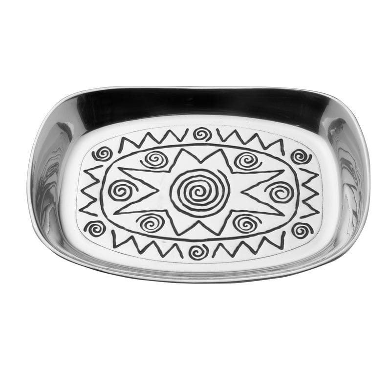 • Tray measures 9 1/4-inches long by 6 1/2-inches wide. • Crafted of Armetale metal, which is an aluminum-based alloy metal, that is 100% recycled, and food-safe. • This piece will not rust, break, crack or chip under normal usage. Wilton products are oven to stovetop to freezer to refrigerator to table. • Hand wash with a soft sponge or cloth and mild soap and warm water. Do not place in automatic dishwasher. Detergents, harsh chemicals and hard water will harm the metal's finish.Share