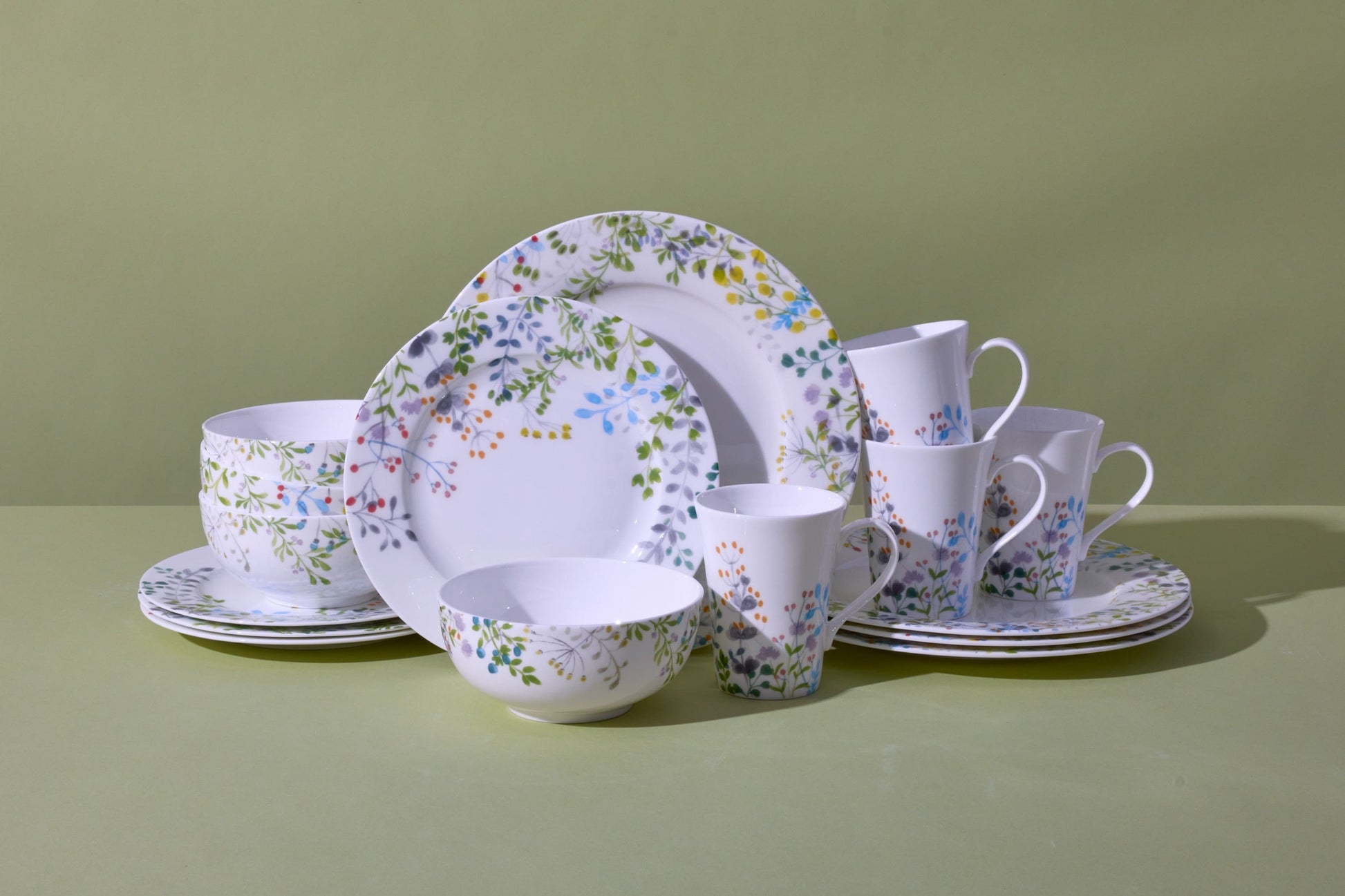 Tivoli Garden breathes new life into your table setting. Vivid white pieces serve as a flower bed from which sprout colorful, delicate buds, making every meal like a walk through a fresh spring meadow. Crafted of high quality bone china. Microwave, oven, freezer and dishwasher safe. 16 piece dinnerware set, service for four, includes (4) each: 11 inch dinner plate, 9 inch salad plate, 5-3/4 inch (24 ounce) soup bowl and 13 ounce mug.
