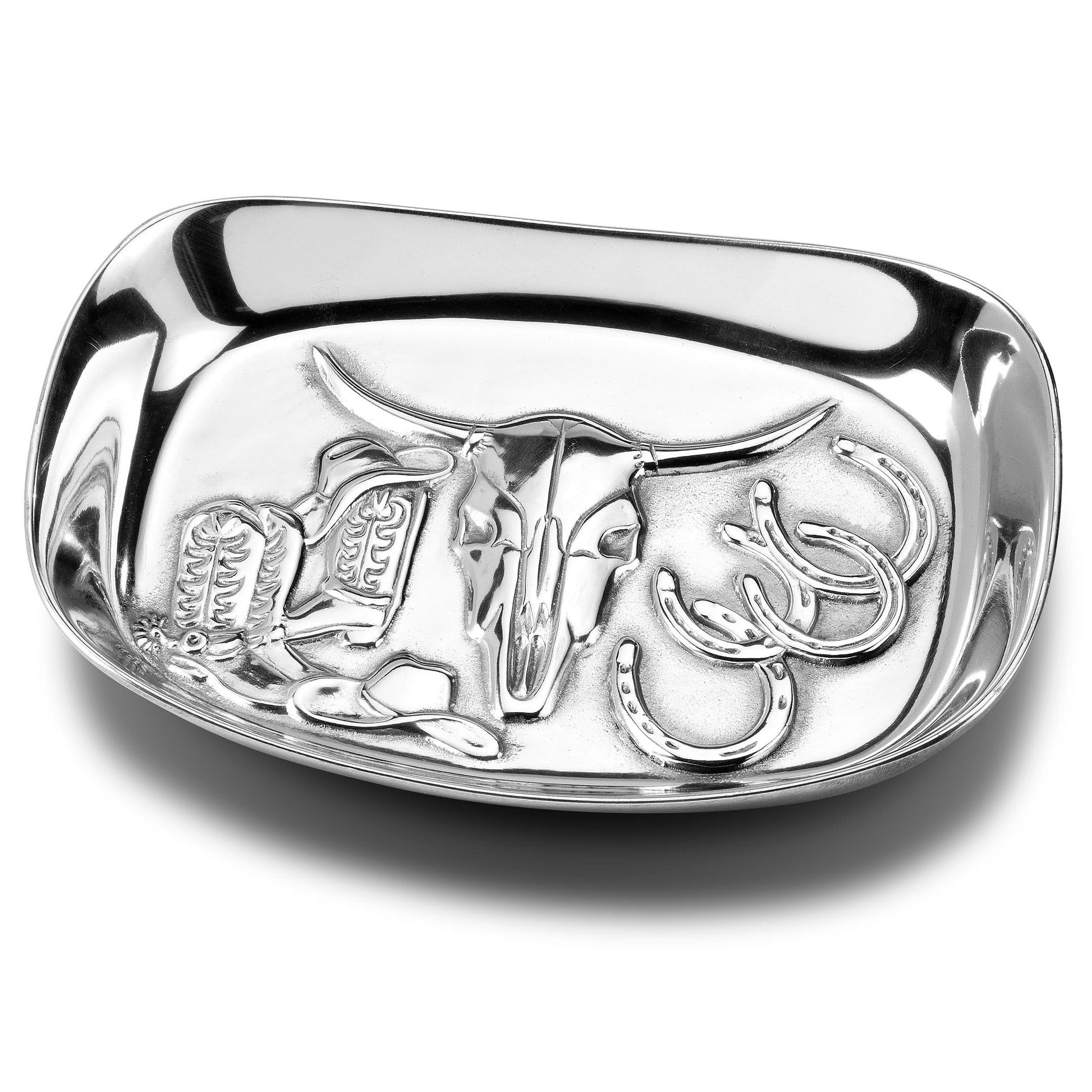 Formal to casual, stylish to rustic, each piece we craft is designed to capture the spirit of your life. Able to withstand temperatures up to 1000 degrees F, Wilton Armetale® Serveware is ideal for your cooking needs. Food stays hot longer and perfect for oven, stove or grill. Designed and crafted by hand, these beautiful products were made to last a lifetime. This Western Bread Tray pays homage to the Lone Star State with classic Texas inspired elements. Bread tray measures 9 inch long x 6-1/4 inch wide.